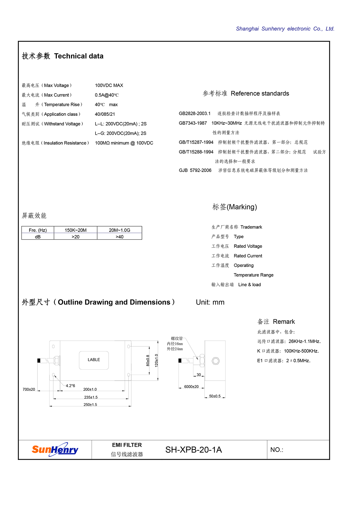 屏蔽體 多路信號(hào)線濾波器SH-XPB-20-1A