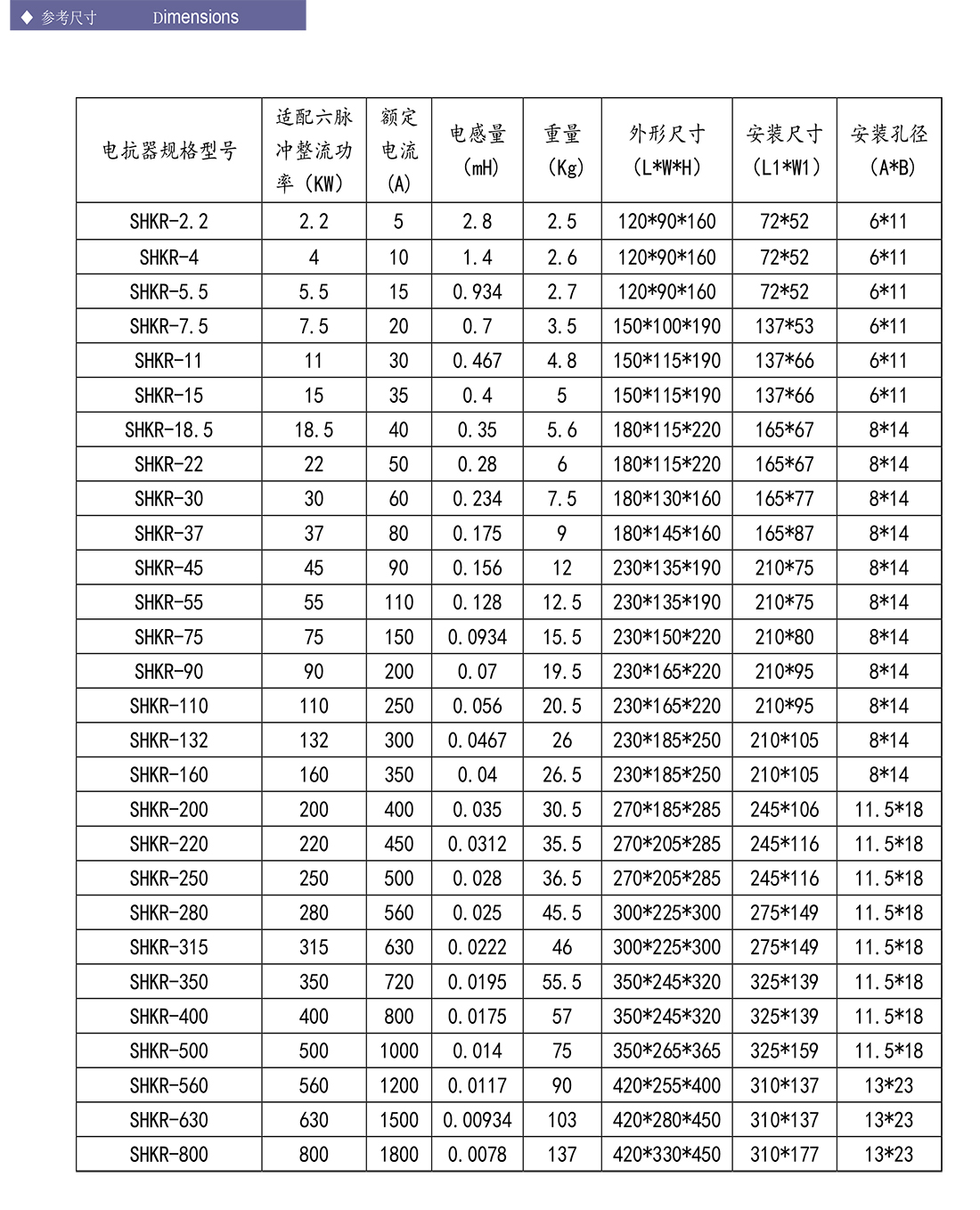 進(jìn)線電抗器SHKR 系列